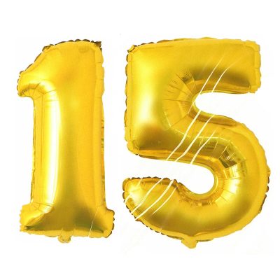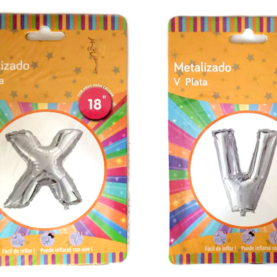 Incluye dos globos con las letras “X” y “V” de 16 pulgadas dorado unicamente