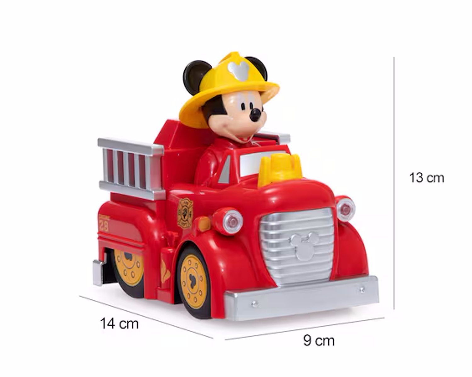 El clásico camión de bomberos con luces y sonidos, donde Mickey entra en acción listo para salvar el día.